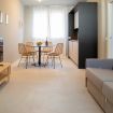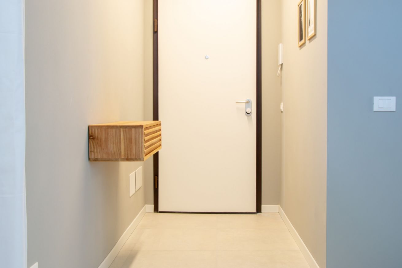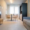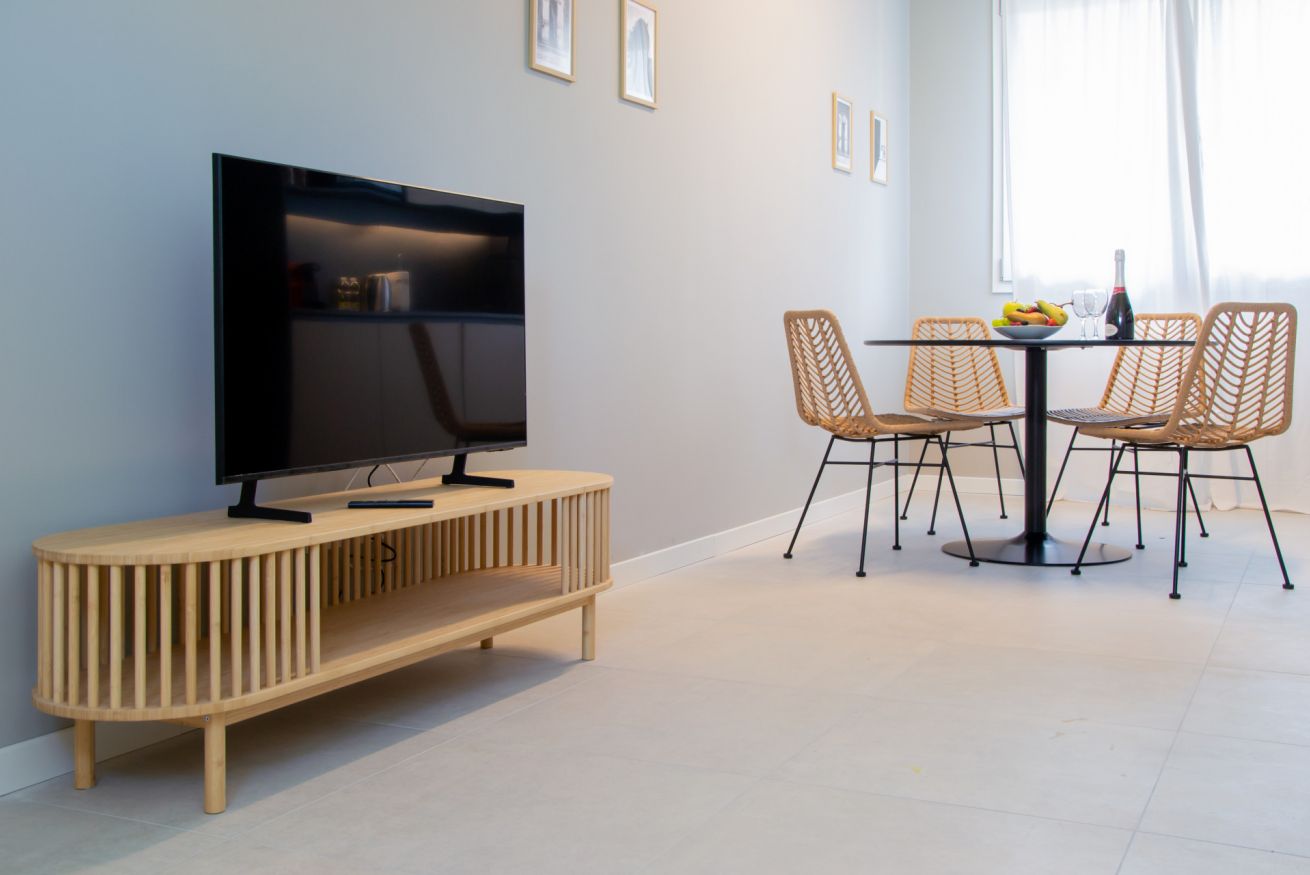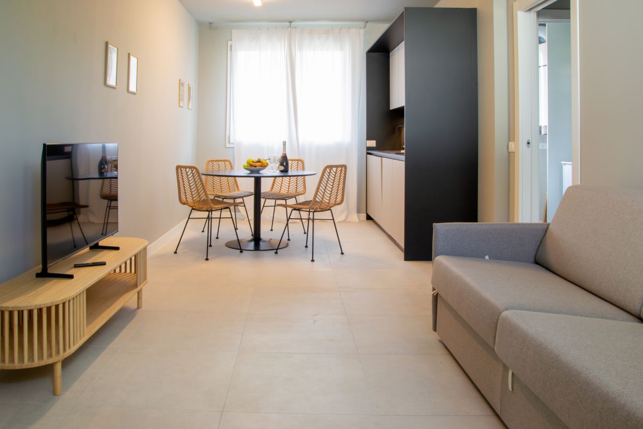 Moderno monolocale di recente costruzione, ideale per ospitare fino a 2 persone. La struttura dispone di un comodo divano letto matrimoniale con materasso nel soggiorno. L’appartamento è dotato di un bagno moderno con doccia, lavatrice e asciugatrice, perfetto per soggiorni sia brevi che prolungati.