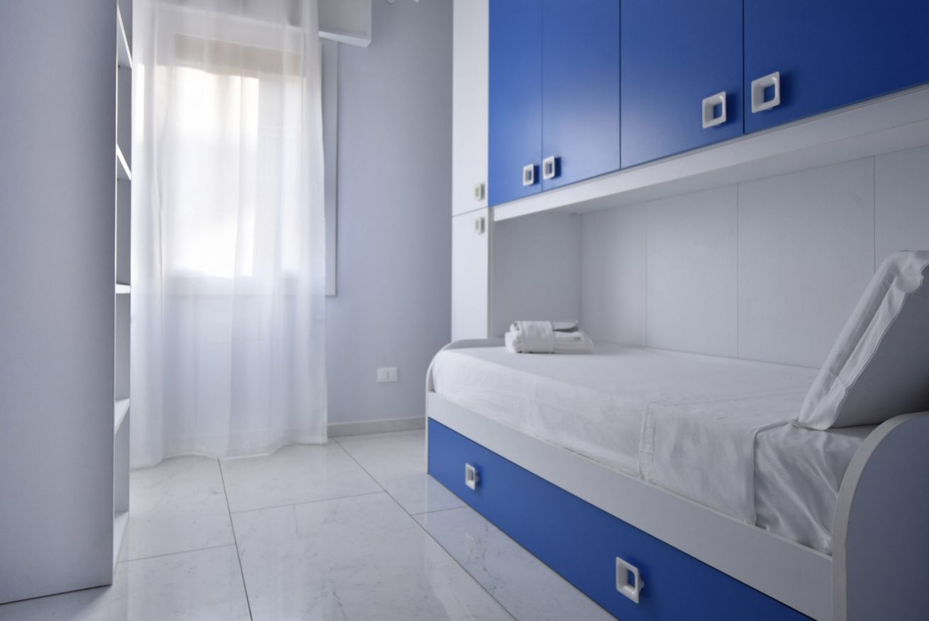 Luminoso appartamento al primo piano, senza ascensore, perfetto per 5 persone. Dispone di un soggiorno con divano letto matrimoniale, cucina attrezzata con lavastoviglie, forno, microonde, tostapane, bollitore e macchinetta del caffè Nespresso. La zona notte offre una camera matrimoniale, una camera singola e un bagno con doccia e lavatrice. Completa la proprietà un piacevole terrazzo. Una soluzione comoda e funzionale per famiglie, coppie o piccoli gruppi.