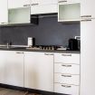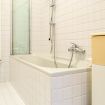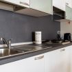 L'appartamento può ospitare fino a 4 persone ed è composto da un luminoso living con divano letto e cucina attrezzata con piano cottura e macchina da caffè Nespresso, due bagni, una camera matrimoniale e una seconda camera con letto alla francese.