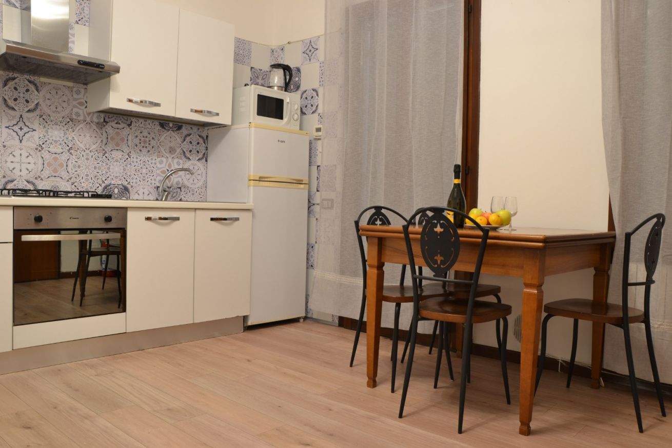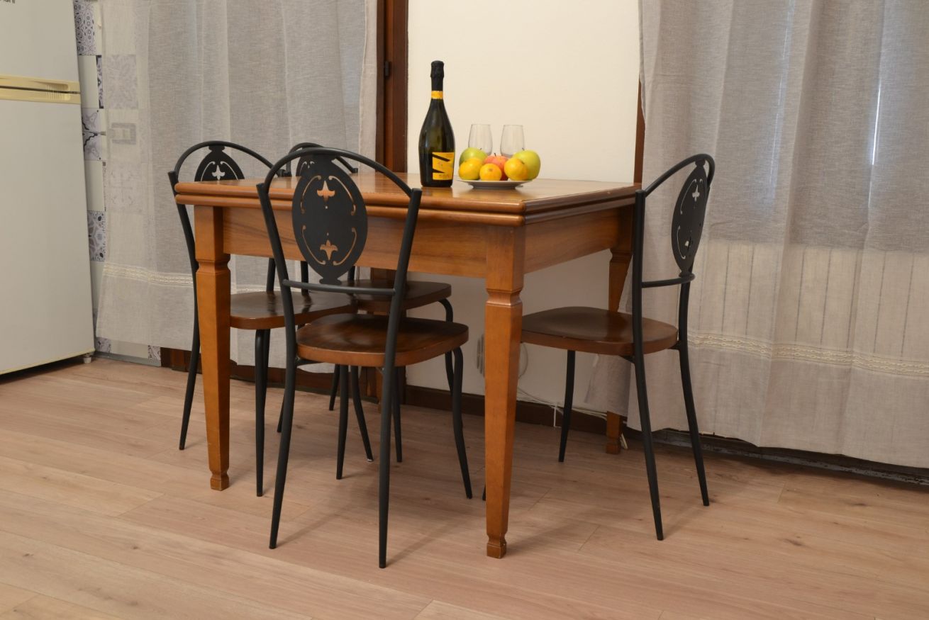 L’appartamento si trova al primo piano senza ascensore e può ospitare fino a 4 persone. Dispone di un soggiorno con divano letto, una camera da letto con un letto matrimoniale e un letto singolo, e una terrazza ideale per momenti di relax.