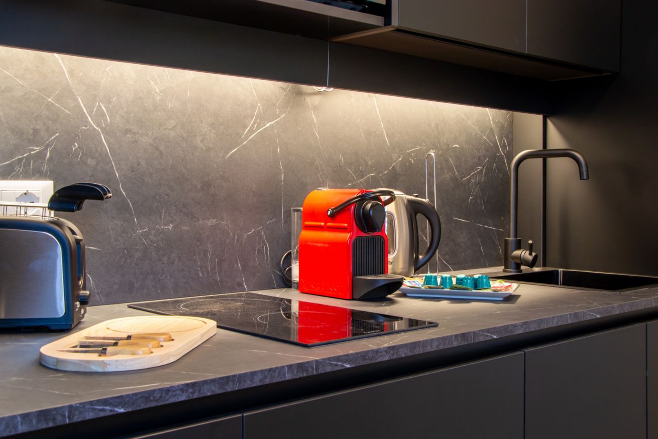 La cucina, completamente attrezzata, include forno, forno a microonde, macchina da caffè Nespresso, tostapane e bollitore, offrendo tutto il necessario per preparare pasti in autonomia. Situato al secondo piano, l’appartamento garantisce facile accesso e comfort.