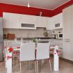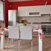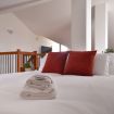 Esso si compone di un soggiorno luminoso ed accogliente con divano, tv e cucina completamente attrezzata di forno, frigo / freezer, microonde, lavastoviglie e macchina caffè Nespresso, entrambi gli spazi sono rifiniti con colori caldi come il rosso e il bianco che trasmettono luminosità e serenità; sempre nel piano terra troviamo il bagno completo di doccia e una camera matrimoniale con pavimento in legno da cui si può accedere ad una terrazza, salendo le scale vi è un ampio salone che ospita due letti singoli con tv, il tutto rifinito con pavimento in legno e una travatura che crea un quadro romantico da cui vi è un ulteriore terrazza dove potersi rilassare e condividere emozioni nelle giornate di sole e di primavera.