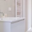 La cucina, completamente attrezzata, include forno, forno a microonde, macchina da caffè Nespresso, tostapane e bollitore, offrendo tutto il necessario per preparare pasti in autonomia. Situato al primo piano con ascensore, l’appartamento garantisce comfort e praticità.